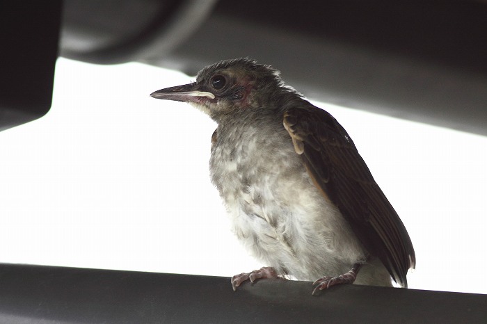 初めて巣から出た時の姿です。親鳥が盛んに呼んでいましたが、恐くて飛び出せ