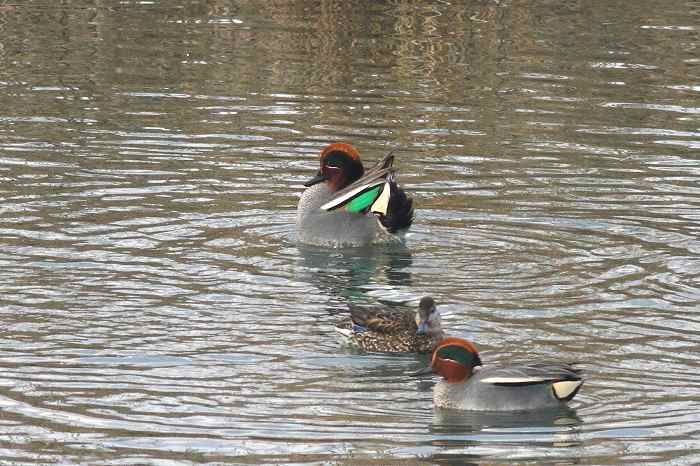 下にコガモが同じ瞬間に、よく見せる姿を載せます。