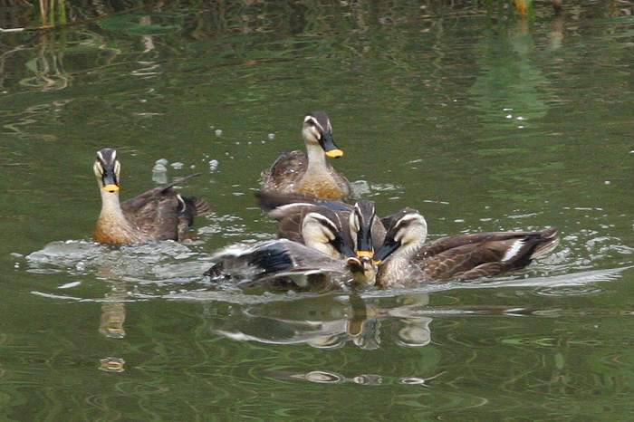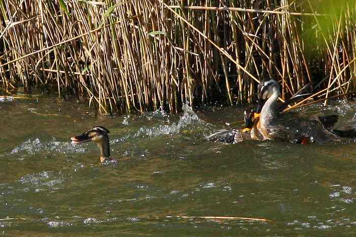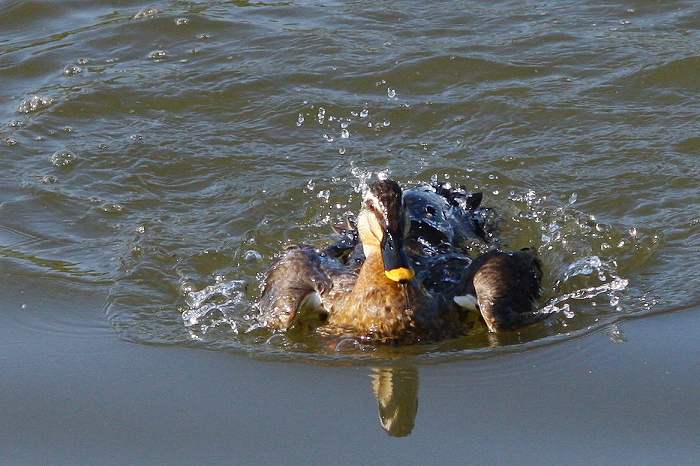 攻撃方法は闖入者の顔を水の中に沈めて窒息させようとしています。カルガモ