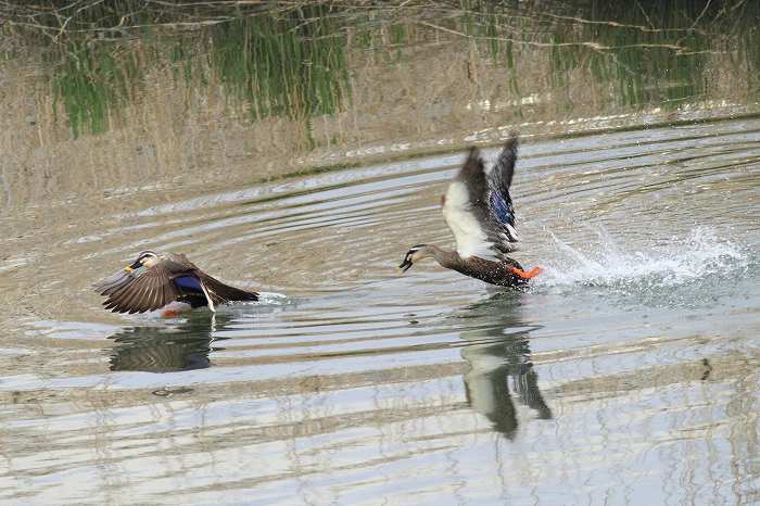 位置に戻って行くのが普通だと思います。写真左のカルガモも、そのよ