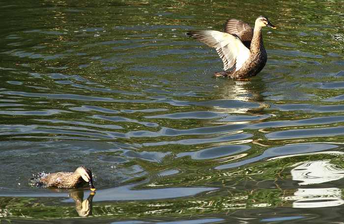 ら潜って逃げる準備です。翼が濡れていたら飛び立つには不利ですが、潜
