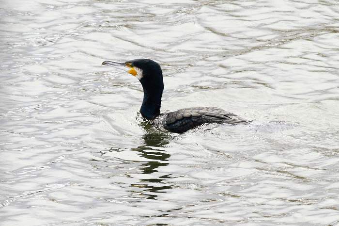 カワウたちとは、少し距離をおいて行動する、とても変なカワウでした。どこか童顔