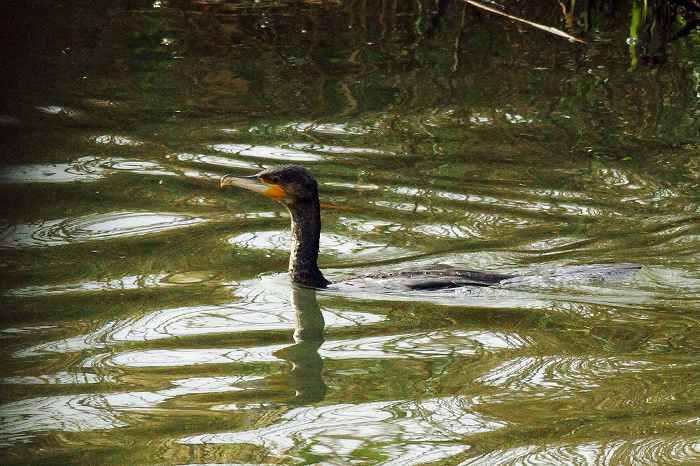 2010年 カワウ 020 戻る 撮影(10/27) 潜り方が豪快で素早いのでウミウかと思いながら撮ったのですが、カワウ でした。未だ真っ黒になっていない若鳥だと思います。 (Canon) EOS 7D EF400mm F5.6L USM
