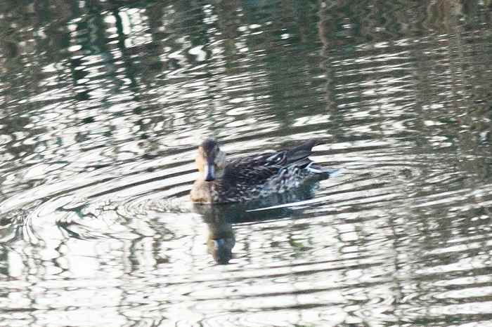 昨年は9月下旬には目撃していました。コガモは小さなカモです。これは♀だ