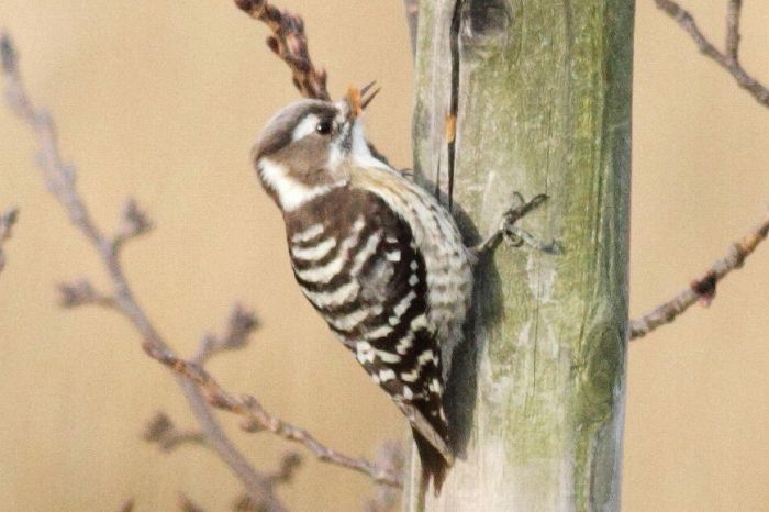 (写真3)番(つがい)で姿を見せたもう一羽のコゲラです。おそらく♀だろうと思い