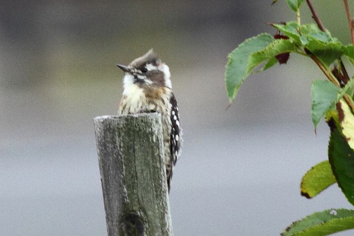 この様に、コゲラに風が当たって頭の羽が立った瞬間の写真を撮り、