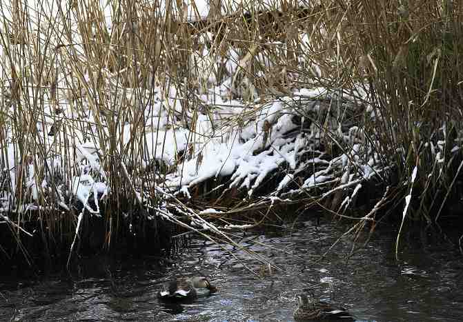 コガモやカルガモには近づいて行きますが、カワウが近づくとオオジュリンは逃
