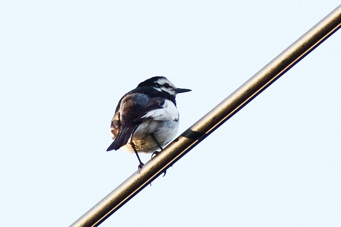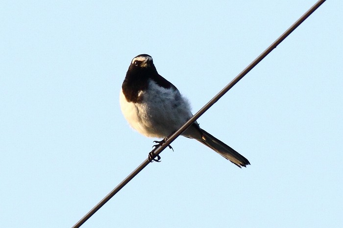 同じ電線で、すぐ近くに止まっていたハクセキレイです。