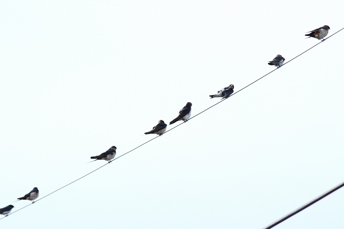 「コシアカツバメ」の項目に載せた写真と同じものです。ずらりと50羽以上が並