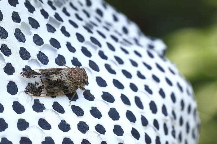2010年 庭 117 戻る 撮影(07/26) 猛暑の夏が続いています。まいったまいったという感じです。 人の背中に止まって休憩しいるセミです。蝉も参ったという感じで しょうか? まさか。 (Canon) EOS 50D EF100mm F2.8L Macro IS USM