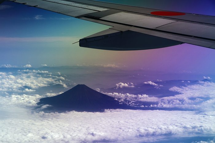ちょっとした急用があって飛行機に乗りました。ちょっと変てこりんな富士山