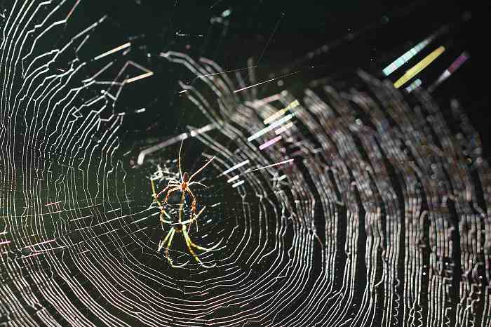 2010年 庭 139 戻る 撮影(09/02) 9月に入っても猛暑続きです。写真撮りも何となくけだるい感じです。 2匹の蜘蛛が互いに接近した場所に勝手に巣作りを始めていました。これも 暑さの所為でしょうか? (Canon) EOS 50D EF100mm F2.8L Macro IS USM