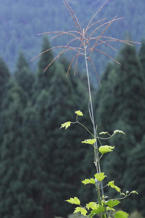 2010年 庭 147 戻る 撮影(09/16) 凄いススキに出会いましたので、記念掲載です。こんな草に巻き付かれて も平気です。粘り腰というのでしょうか。 撮影地は岡山県真庭郡新庄村です。 (Canon) EOS 7D EF70-200mm F4L IS USM