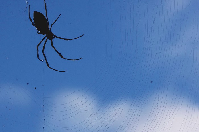 2010年 庭 171 戻る 撮影(10/10) 度々訪れる公園で、久々に澄み切った青空に、ぽっかり雲が浮かんでいる光景 に出会いましたので、「クモとクモ」と洒落込んでみました。 (Canon) EOS 50D EF100mm F2.8L Macro IS USM