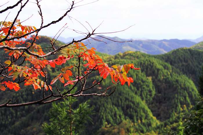 無理矢理に紅葉らしき姿を撮りました。少し早いようですが、山の気温が