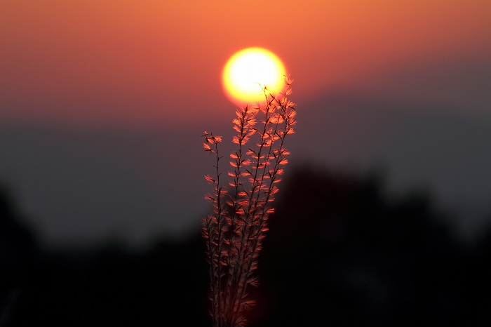 2010年 庭 183 戻る 撮影(10/19) 相変わらずススキです。太陽が沈む方向がどんどん移動していますので、 真っ正面からぶつかって撮る場所を探すのが大変です。 (Canon) EOS 7D EF70-200mm F4L IS USM