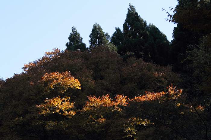 2010年 庭 221 戻る 撮影(11/08) 此の場所は、或る時間帯に一部の木に陽光が当たりますので、この時期には 時々行きます。鳥取県東伯郡三朝町です。 (Canon) EOS 7D EF70-200mm F4L IS USM