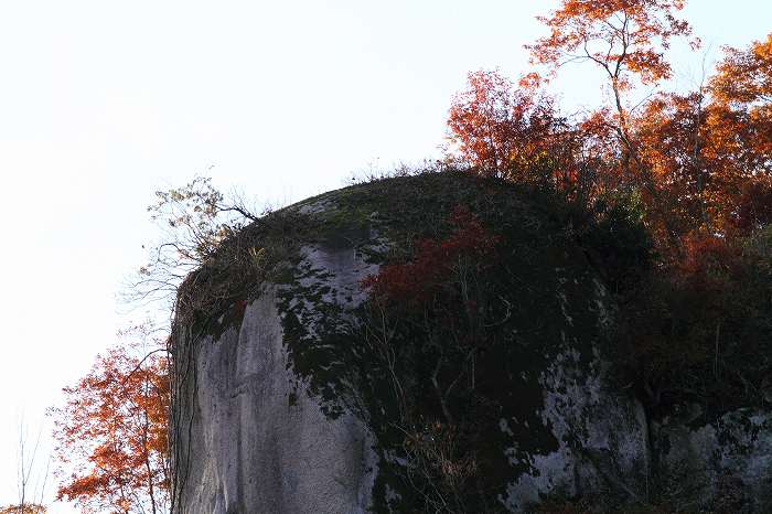 大きな岩と紅葉です。岡山県鏡野町上斎原です。