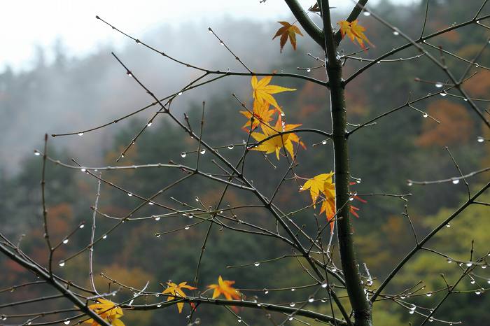2010年 庭 269 戻る 撮影(11/24) 昨日(23日)『青谷シャッタークラブ』の撮影会に参加させて頂きました。最初に 鳥取市用瀬町「赤波渓谷」に到着した頃は雨でした。紅葉風景は未だ健在でした。 (Canon) EOS 7D EF70-300mm F4-5.6L IS USM