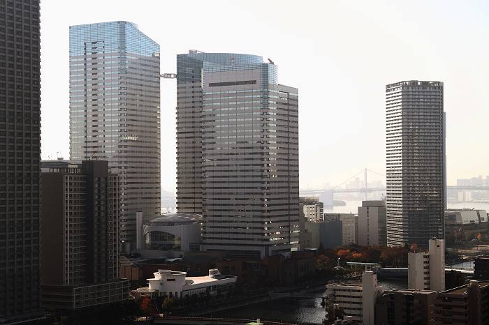 2010年 庭 278 戻る 撮影(11/30) 用事があって東京へ行ってきました。 無理して見れば、高層ビルの麓に紅葉が見られます。向こうに、もや〜っと 見えるのは「レインボーブリッジ」です。 これで思い出に残りそうな風景の最終にします。 (Canon) EOS 7D EF-S17-55mm F2.8 IS USM