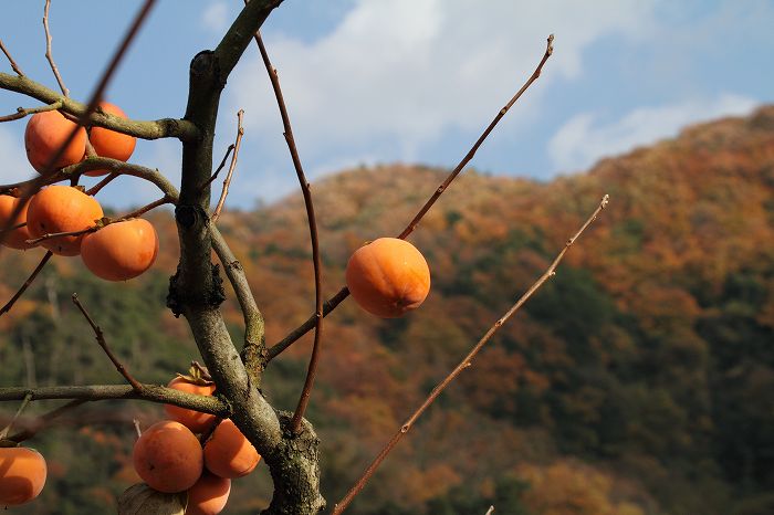 です。未だ沢山の実が木にぶら下がっていました。向こうの山は、紅葉