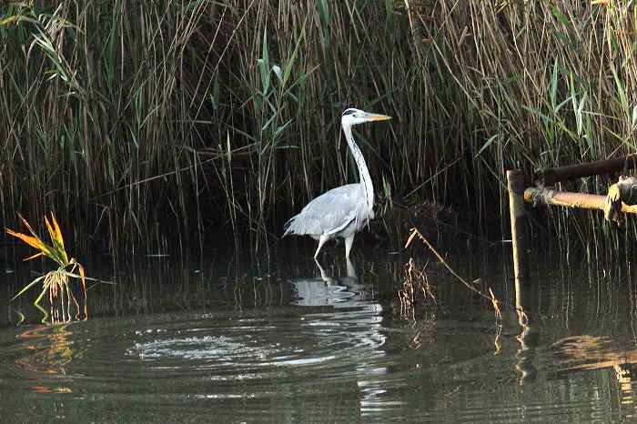 ますから、仲良しのカワウでは無いことが分かります。アオサギは向こうを見ていて
