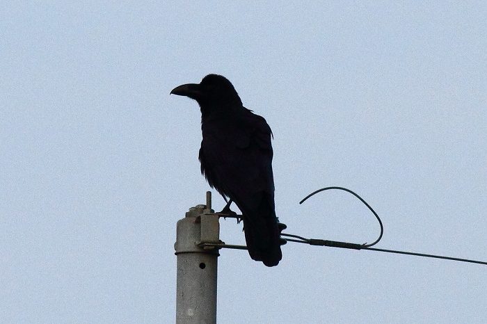2011年 ハシブトガラス 004 戻る 撮影(08/03) 此の顔形は特徴的です。何時の頃からか、ハシブトガラスが勢力を謳歌して います。反対にハシボソガラスの姿は見られません。 (Canon) EOS 60D EF400mm F5.6L USM