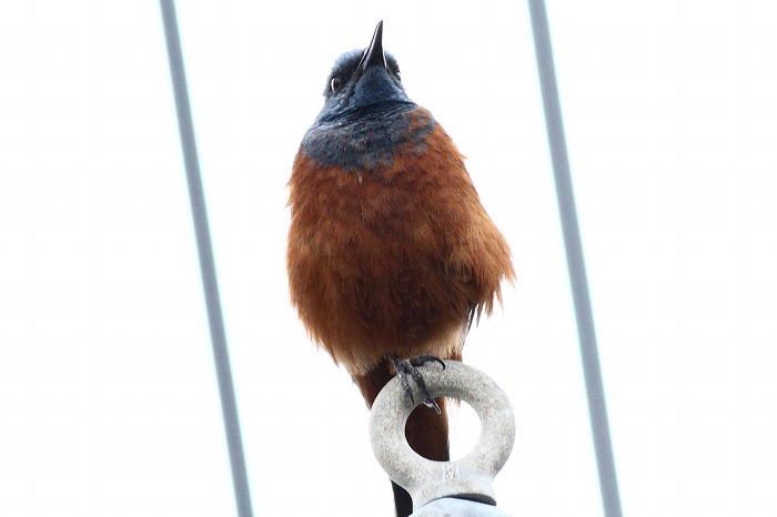 2011年 イソヒヨドリ 026 戻る 撮影(06/16) イヒ6世です。左脚は左側の下面に隠れています。今朝5時頃、我が窓のすぐ近く で大声で鳴き、びっくりして目覚めました。 幼鳥の姿は見られません。この2、3日、イヒ6世も見ません。 (Canon) EOS 7D EF400mm F5.6L USM