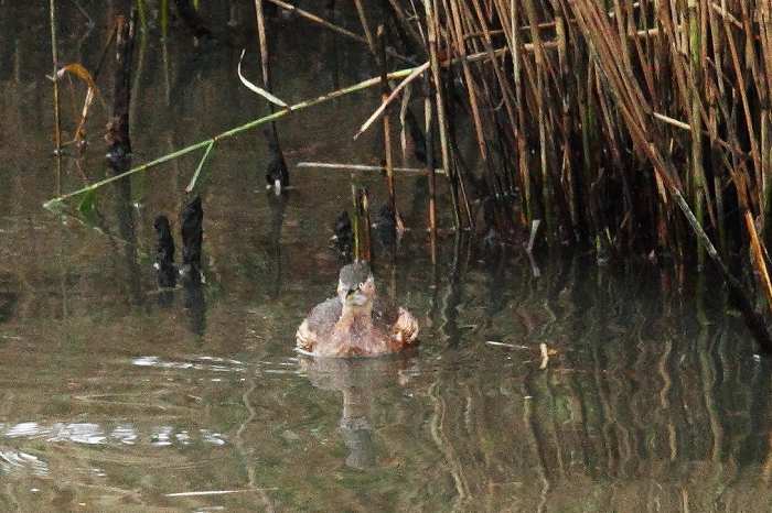 2011年 カイツブリ 012 戻る 撮影(12/01) 12月登場の第一号はカイツブリです。この姿を見て、今年生まれの若鳥なのか、それと も他のカイツブリなのか、さっぱり判りません。 (Canon) EOS 7D EF 400mm F5.6L USM