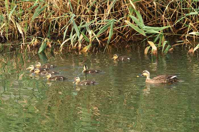 9羽くらい孵化して並んで泳ぎましたが、結局残るのは7羽程度でした。