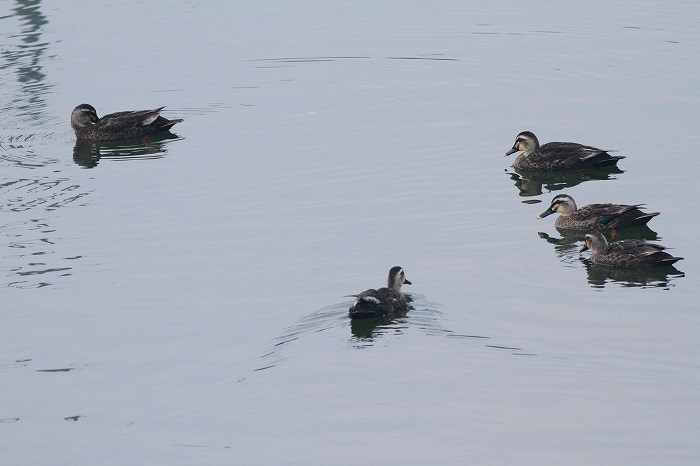 8月1日のカルガモ親子です。子は7羽です。過去の例では、多くの場合、最初は
