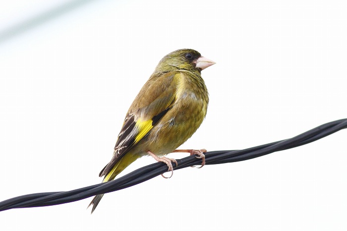 2011年 カワラヒワ 004 戻る 撮影(06/10) 6月も登場です。日本で繁殖するコカワラヒワとも言われる亜種カワラヒワだと 思います。留鳥です。スズメと同じかやや小さい鳥です。 EOS 7D EF 400mm F5.6L USM