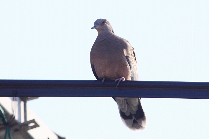 女帝候補イソヒヨドリ♀とは顔見知りではないキジバトです。