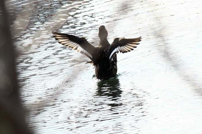 2011年 キンクロハジロ 003 目次へ 撮影(01/29) 鳥取県では、衰弱したキンクロハジロから鳥インフルエンザウイルスが検出され たので、変な意味で有名になった鳥です。これは♀です。 翼上面には太く鮮明な白帯が見られます。30日現在では此の個体は元気です。 他のキンクロハジロは見られず、単独行動です。コガモが水面に姿を見せますと、 此の鳥も、何処からか出てきます。 (Canon) EOS 7D EF400mm F5.6L USM