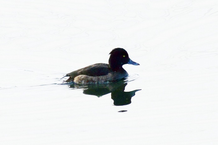 2011年 キンクロハジロ 004 目次へ 撮影(02/02) 本日はキンクロハジロが2羽に増えていました。これは♀です。本日 ははっきりと冠羽を見せていました。 鳥取県西部の方で、衰弱したキンクロハジロから、強い毒性を持った インフルエンザウイルスが検出されたことが報道されていましたが、我 が窓外のキンクロハジロは2羽共に元気です。 (Canon) EOS 7D EF400mm f/5.6L USM