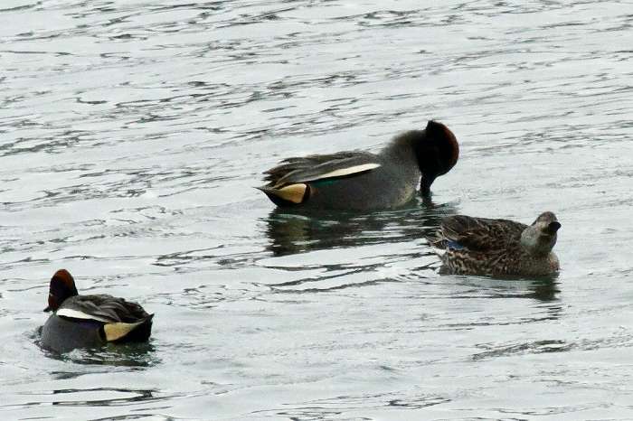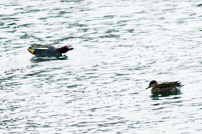 ついでに嘴も前に出して、「ピー」「ピリッ」「ピリギャ」と鳴きます。この例は、泳ぎ