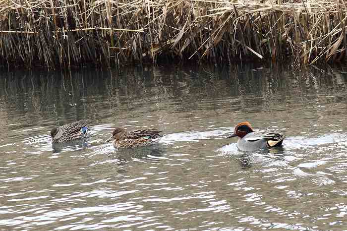 渡り鳥のコガモは連日、元気よく泳いでいますが、相変わらず陸上の渡り鳥は姿を