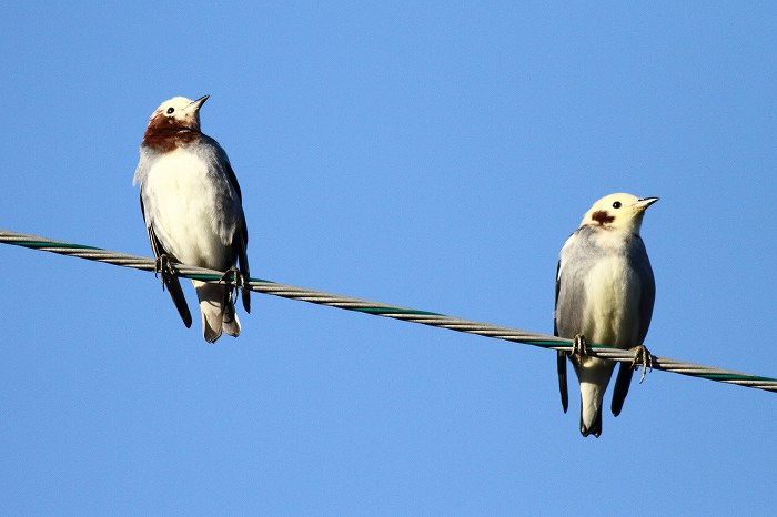 此の2羽は頭部から頬、側頸の茶色い部分が大違いです。両方が♂だと思います。
