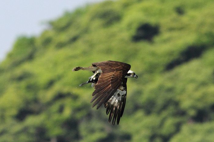 見事に魚を掴み、得意顔でこちらを見ながら、飛び立っている姿です。