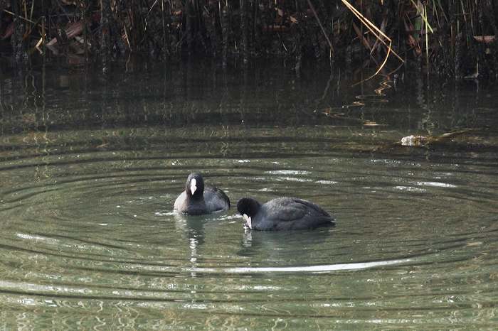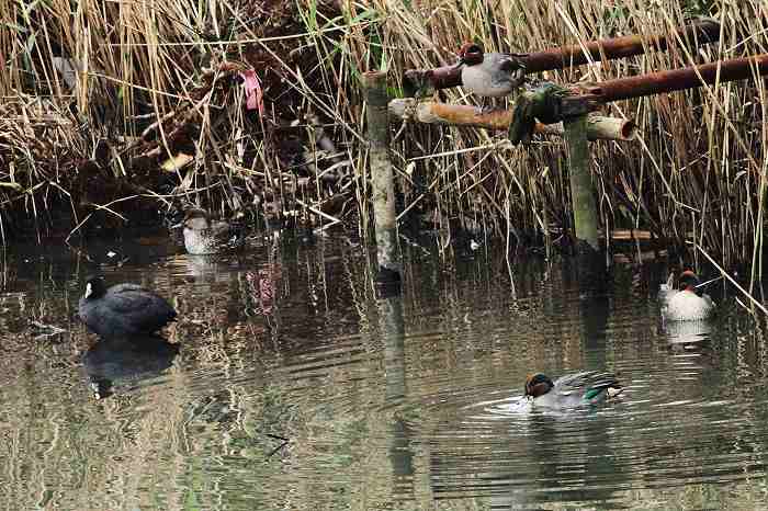 2011年 オオバン 002 戻る 撮影(11/27) 此の日オオバンが2羽に増えました。 (写真1)撮影:11/27 (写真2)撮影:11/28 此の日オオバンは1羽に減っていて、異種の鳥であるコガモに囲まれて楽しそうに羽繕い などをしていました。このあたりが私には分からない所です。 (Canon) EOS 7D EF400mm F5.6L USM