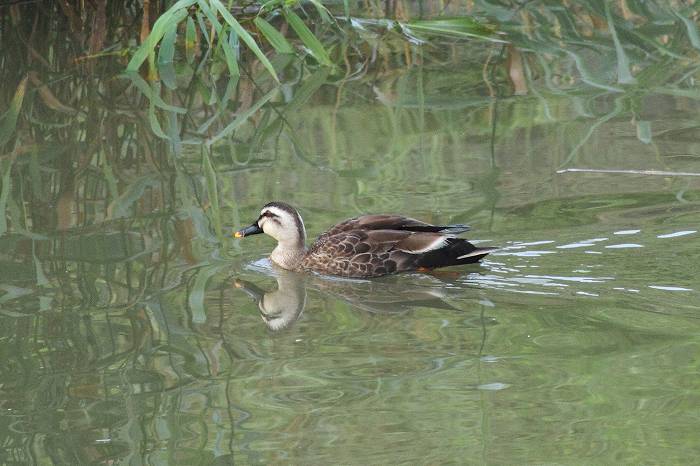 例の如く1羽のカルガモが随行していました。