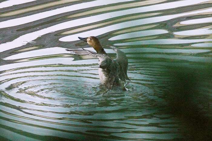 近くをカルガモが泳いでいるのに、水浴びをしていましたから、そのカルガモと