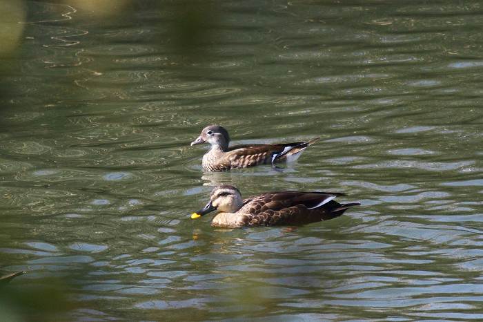 カルガモは眠くて眠くてオシドリを思い遣る余裕はありません。間もなく眠ってしまい