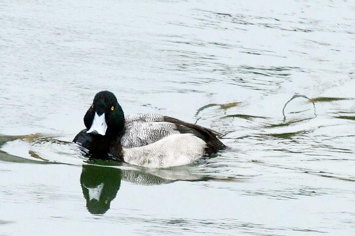 嘴の先端に黒い部分があります。三角形です。この嘴爪がスズガモはコスズガモに比べ