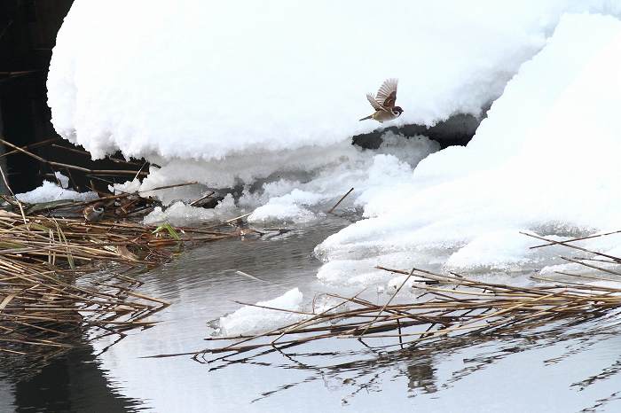 2011年 スズメ 001 戻る 撮影(01/02) スズメは非常に重要な鳥で、鳥の大きさの基準になっていますし、スズメ目の 鳥はとても多く、カラスまでもがスズメ目ですから、敬意を表して月に一度は載せ ることにしています。 写真左下にも居ますので、見てやって下さい。積雪の折には、こういう場所で も餌を探しています。 (Canon) EOS 7D EF 400mm F5.6L USM