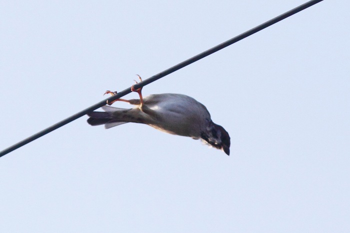 よいものやら、下に逃げたらよいものやら分からず、ぶら下がった姿です。