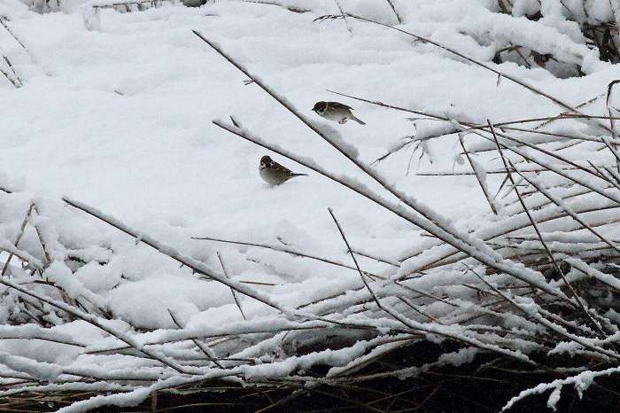 2011年 スズメ 013 戻る 撮影(12/25) 数日前から葦に止まって遊ぶようになりました。本日は雪上にとまったので撮影出来まし た。 ハイタカは葦の近くに居る小鳥を狙って急降下していましたから、おそらく主にスズメを餌 にしようと考えていたのだと思います。今のスズメの様子を見ますと、そのハイタカは何処 かへ移住したのかも知れません。 (Canon) EOS 7D EF400mm F5.6L USM