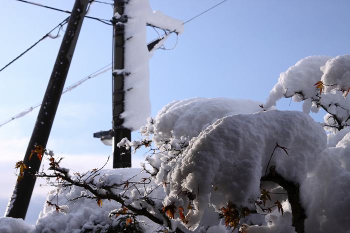 未だ頑張っていた紅葉に多量の雪が覆い被さっていました。写真の右方