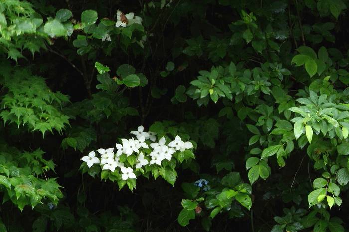 ヤマボウシ(山法師、ヤマグワ)の花です。ヤマホウシとも。10月頃に実が生り、
