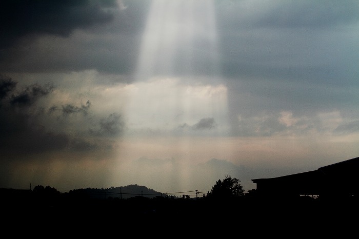 知れないと思い、湖畔に車を止めて待ちました。虹は出ませんでしたが、光芒が出まし